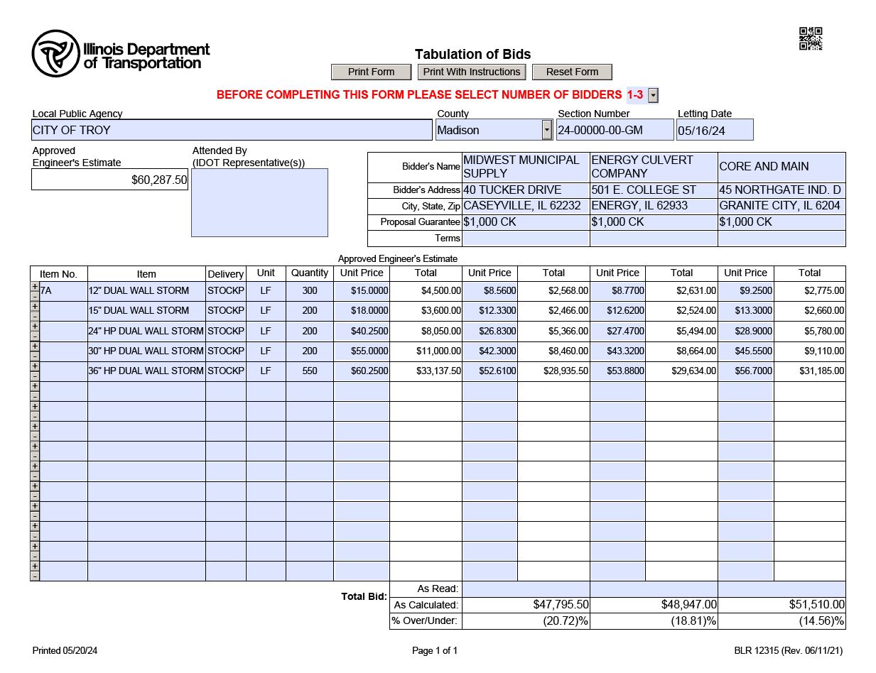 Bid Tab Sheets only represent bids presented on opening day. The City Council approves contracts through a vote following opening day.